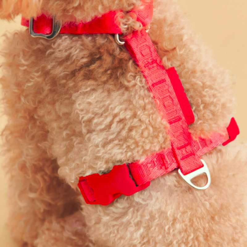 Шлейка оснащена тремя регуляторами с логотипами, что позволяет легко подгонять её под размер вашей собаки, обеспечивая идеальную посадку и комфорт. Пластиковые застежки в виде косточки с логотипом не только придают шлейке стильный вид, но и делают её использование простым и удобным.