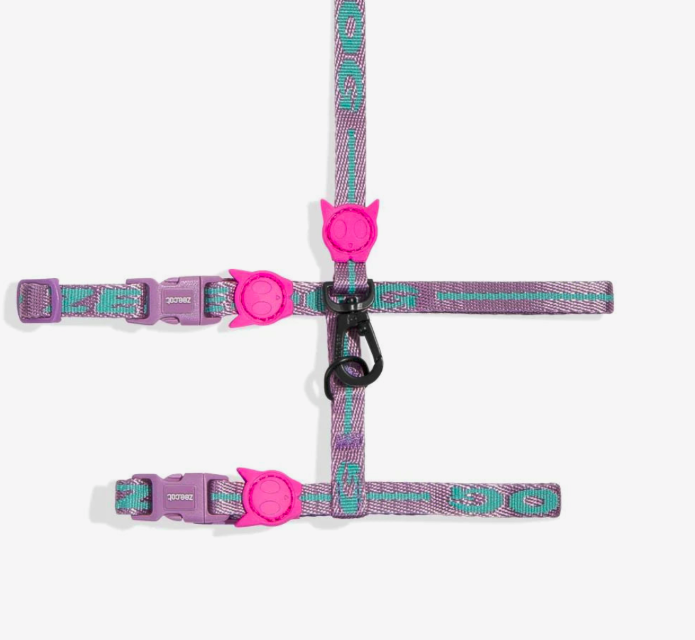 В набор вошли шлейка и легкий поводок. Шлейка имеет универсальный размер и подходит большинству котиков. Регулировки обхвата шеи и груди позволяют настроить амуницию точно по размеру. Кольцо крепления поводка – на спине. Облегченная конструкция шлейки подразумевает одну поперечную стропу по спине. Поводок Zee.Cat имеет длину 120 сантиметров, ширину стропы – 1 см и легкий аккуратный карабин. Малый вес поводка не раздражает питомца.