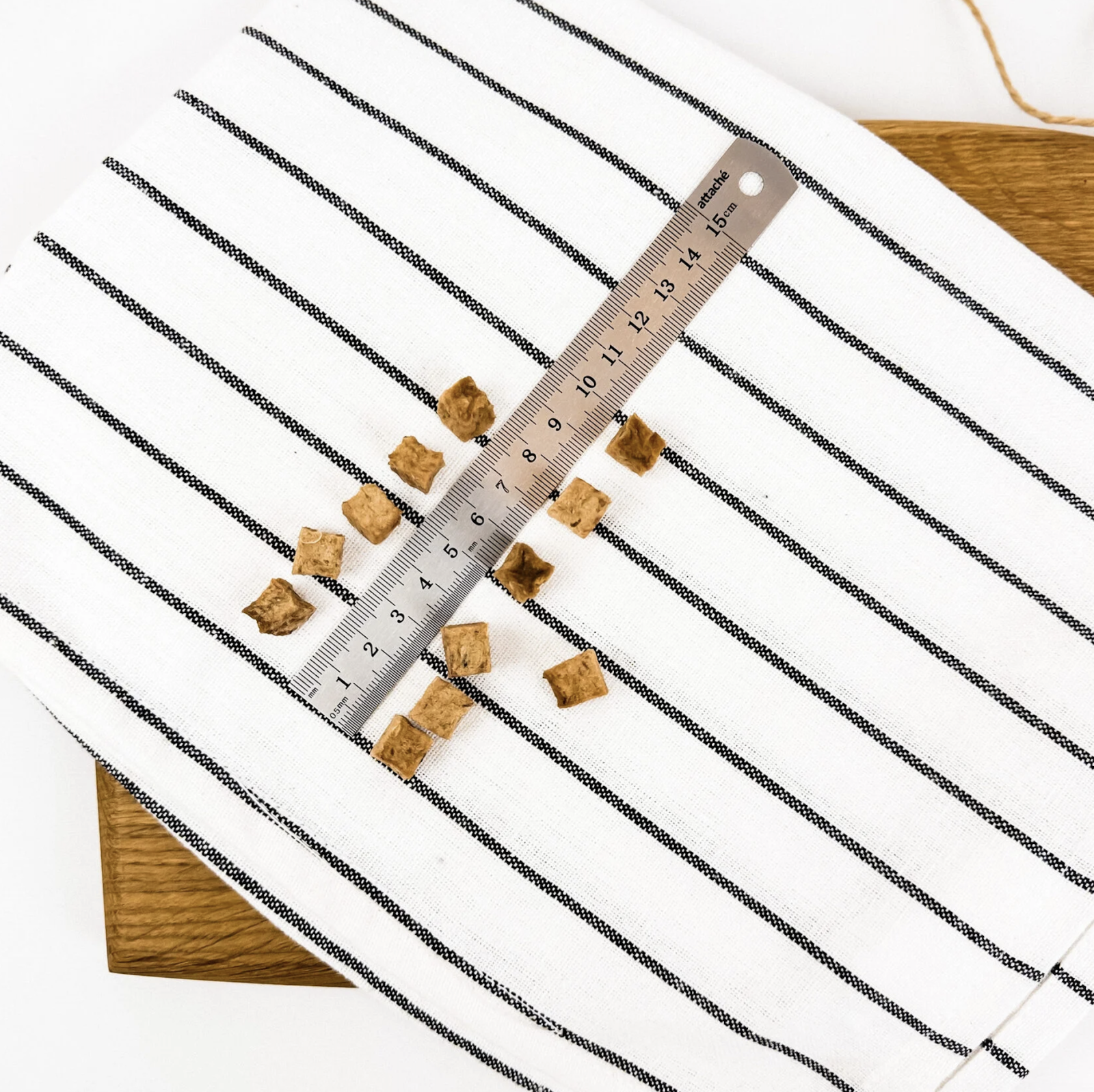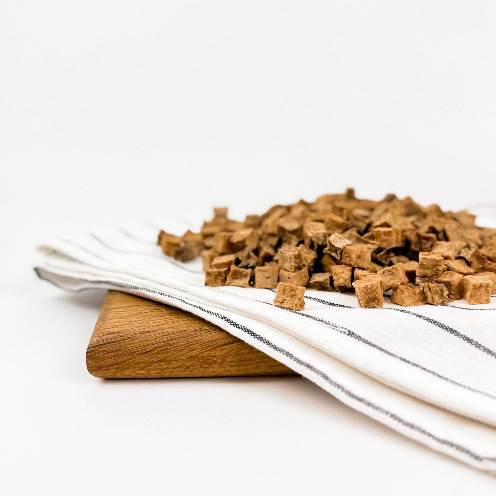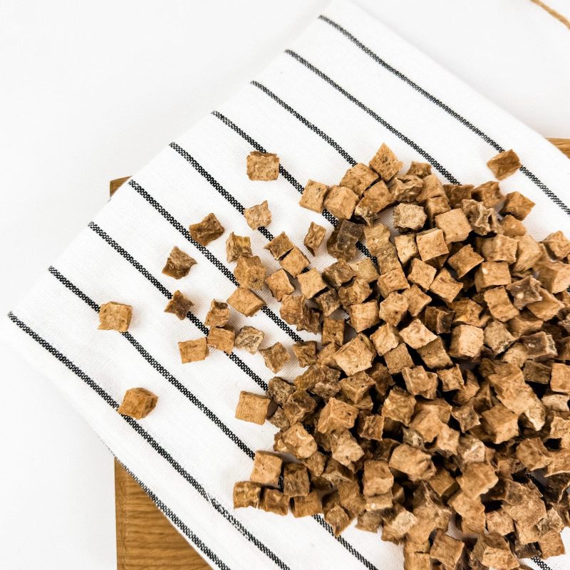 Пикша - один из немногих вариантов для собачек, которые не переваривают субпродукты. Кубики размером 10мм , поэтому подходят для собак любых пород и размеров.