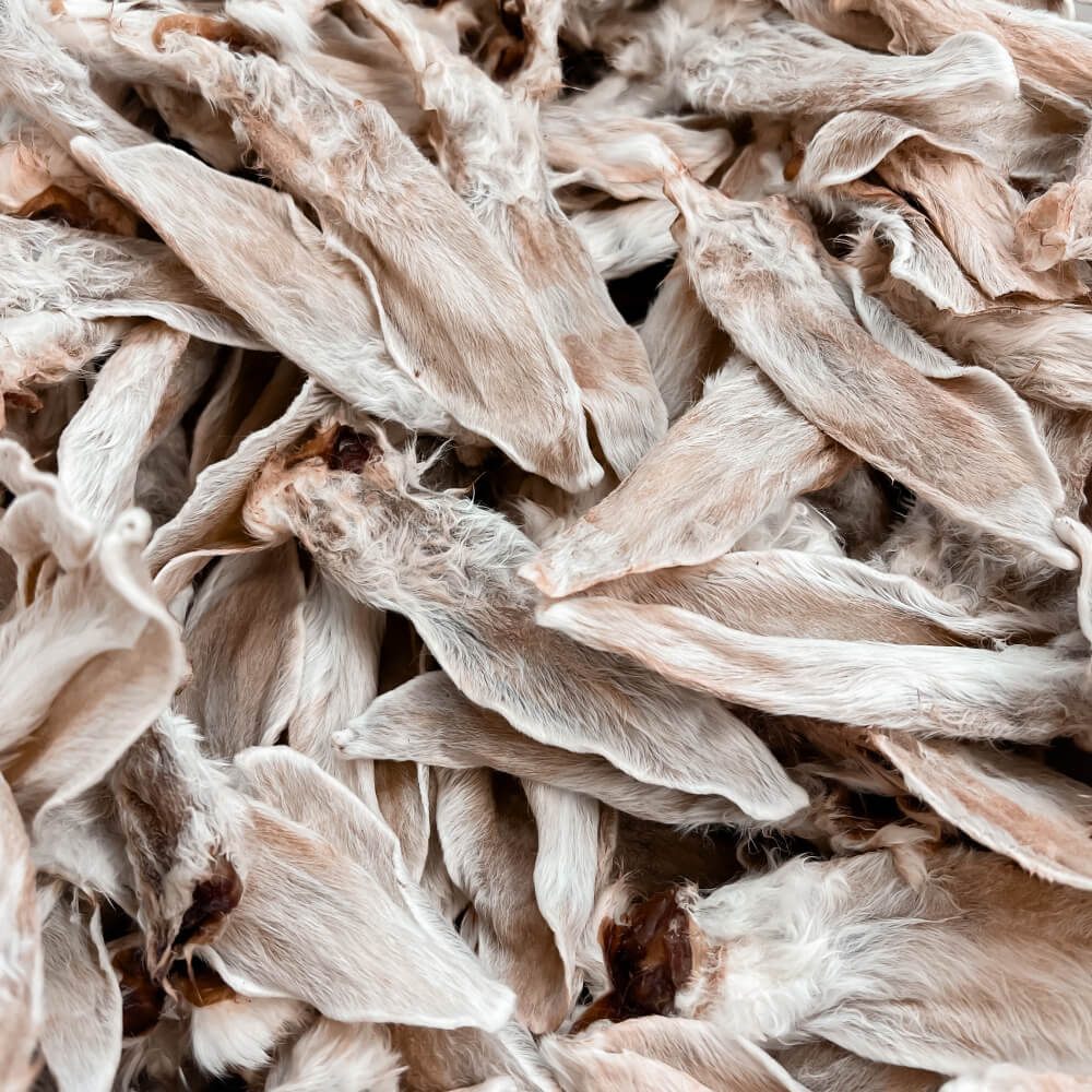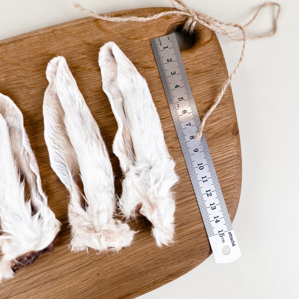 Уши кролика – это тонкие хрящевые пластинки, покрытые шерстью. Они подходят всем породам собачек, у которых жкт хорошо переносит шерстяные лакомства. Это быстрая грызка на перекус, которой можно отвлечь собаку на момент, пока к вам пришел курьер.