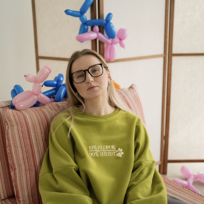 L/XL (длина 75 см, объем в груди 154 см, длина рукава от горловины 84 см).