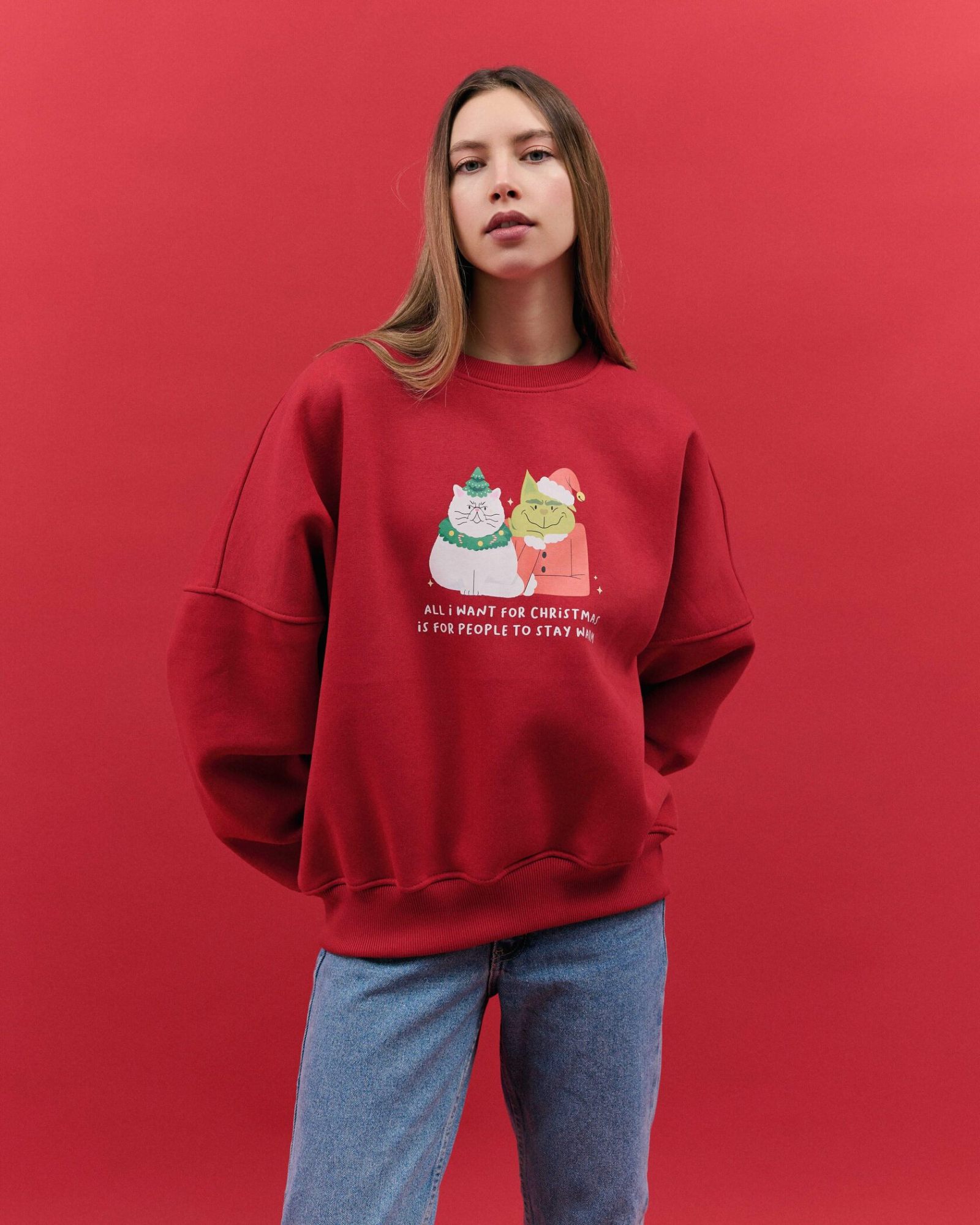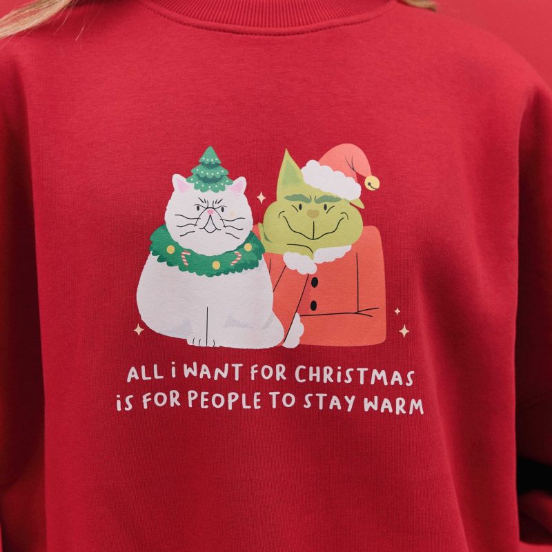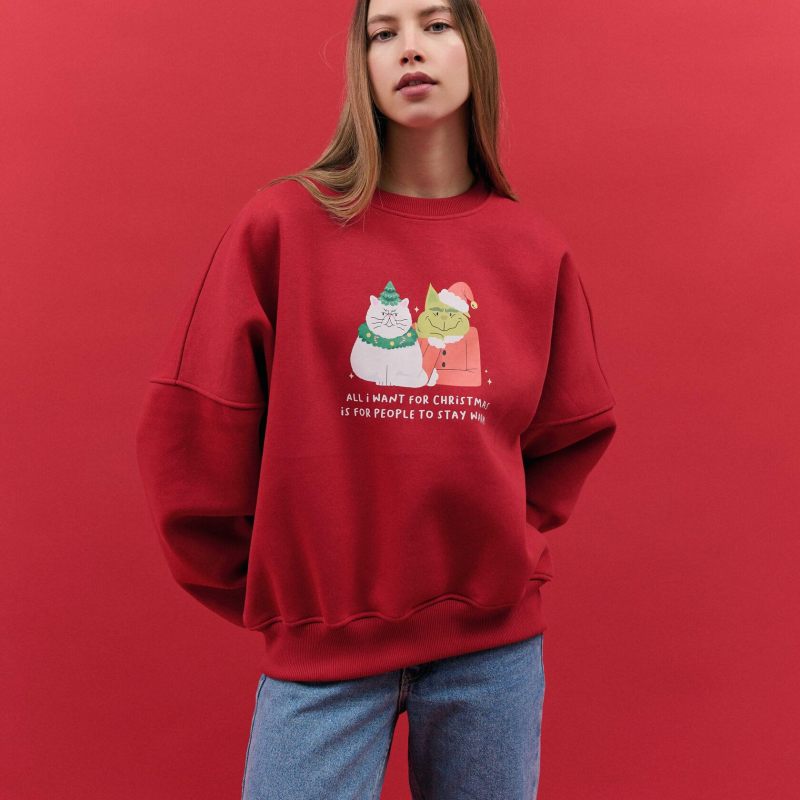 Модель oversize с круглым воротом и надписью на груди, выполненной методом термотрансфер.