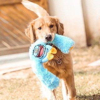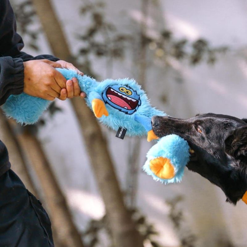 Мягкая игрушка с пищащим мячом из термопластичной резины внутри для чистки зубов и массажа десен.