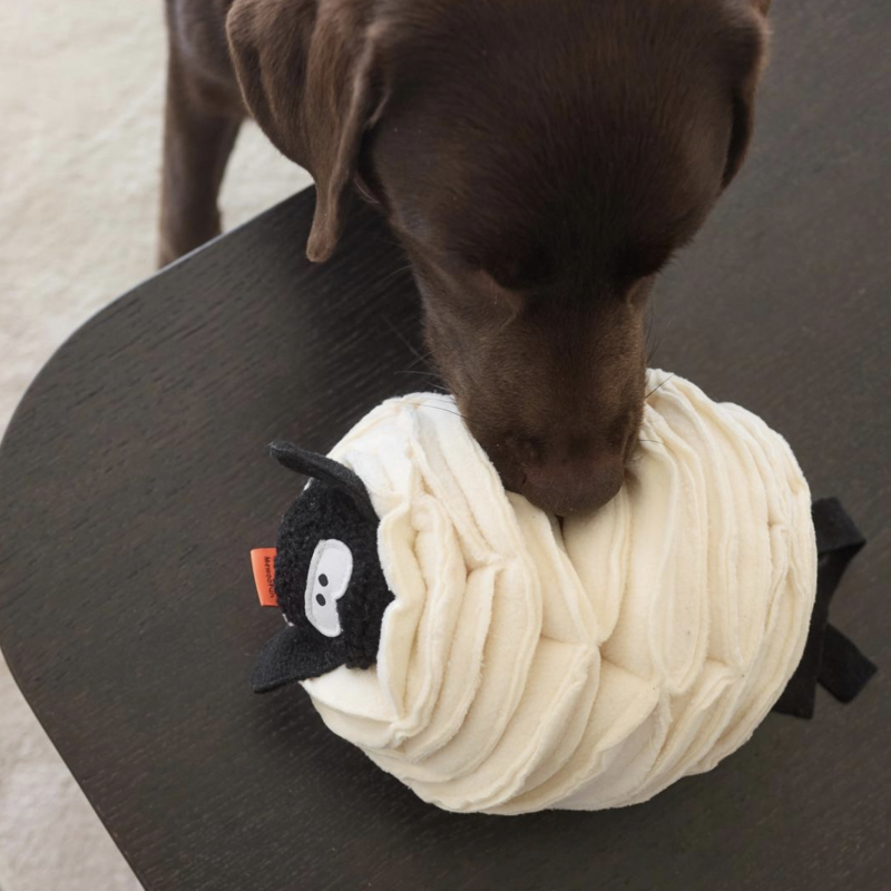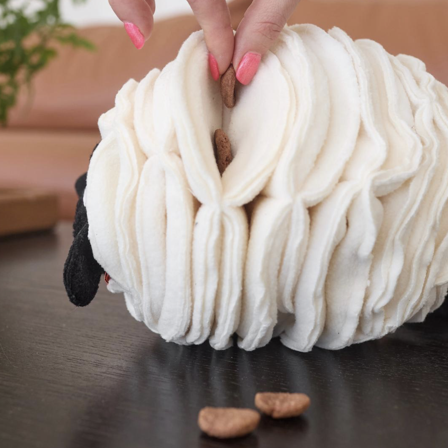 Нюхательная игрушка «Овечка» для собак — это авторская развивающая игрушка, которая улучшает логическое мышление и нюх питомца. Используя лапы и нос, а также применив смекалку, питомец должен найти кусочки лакомства или сухого корма, спрятанные в складки игрушки.