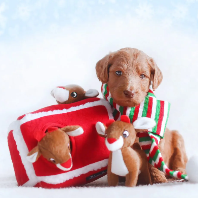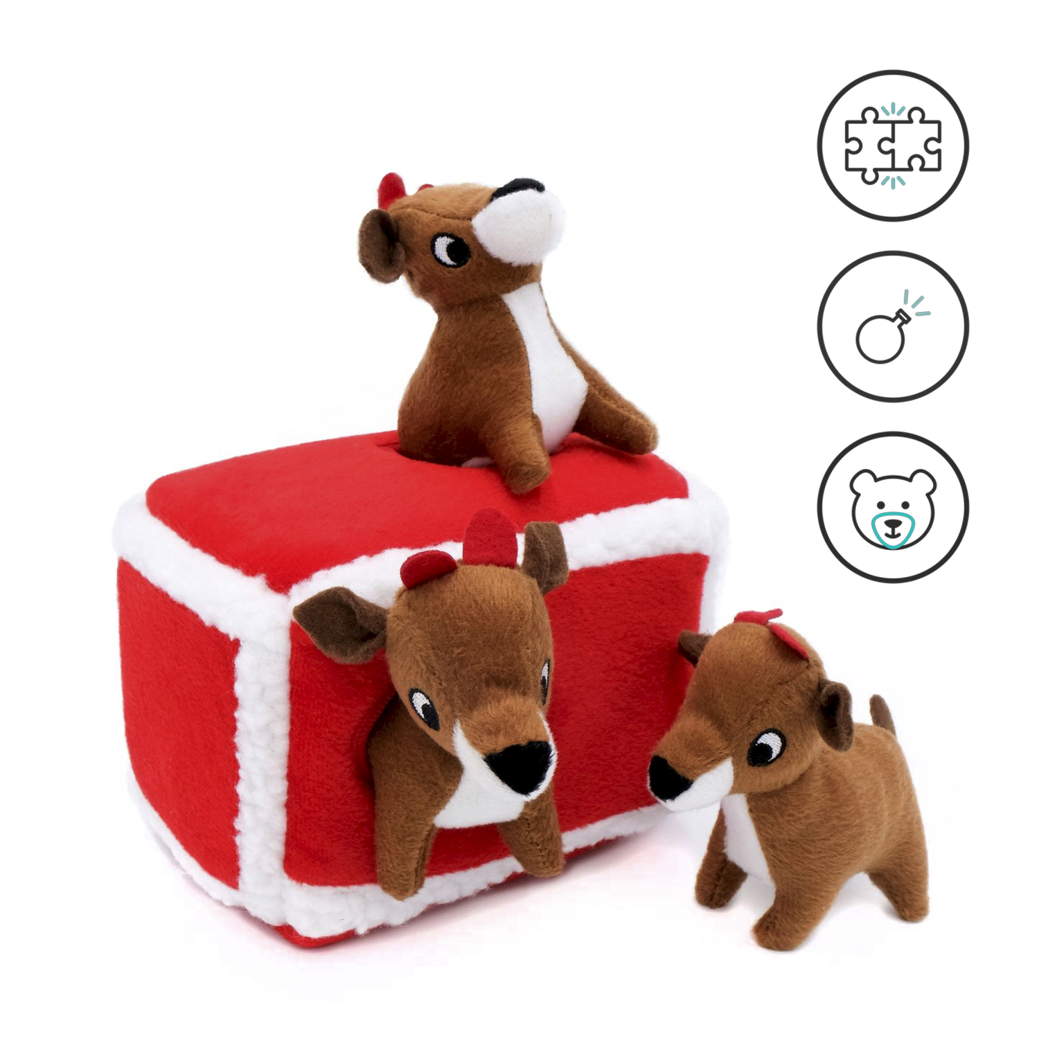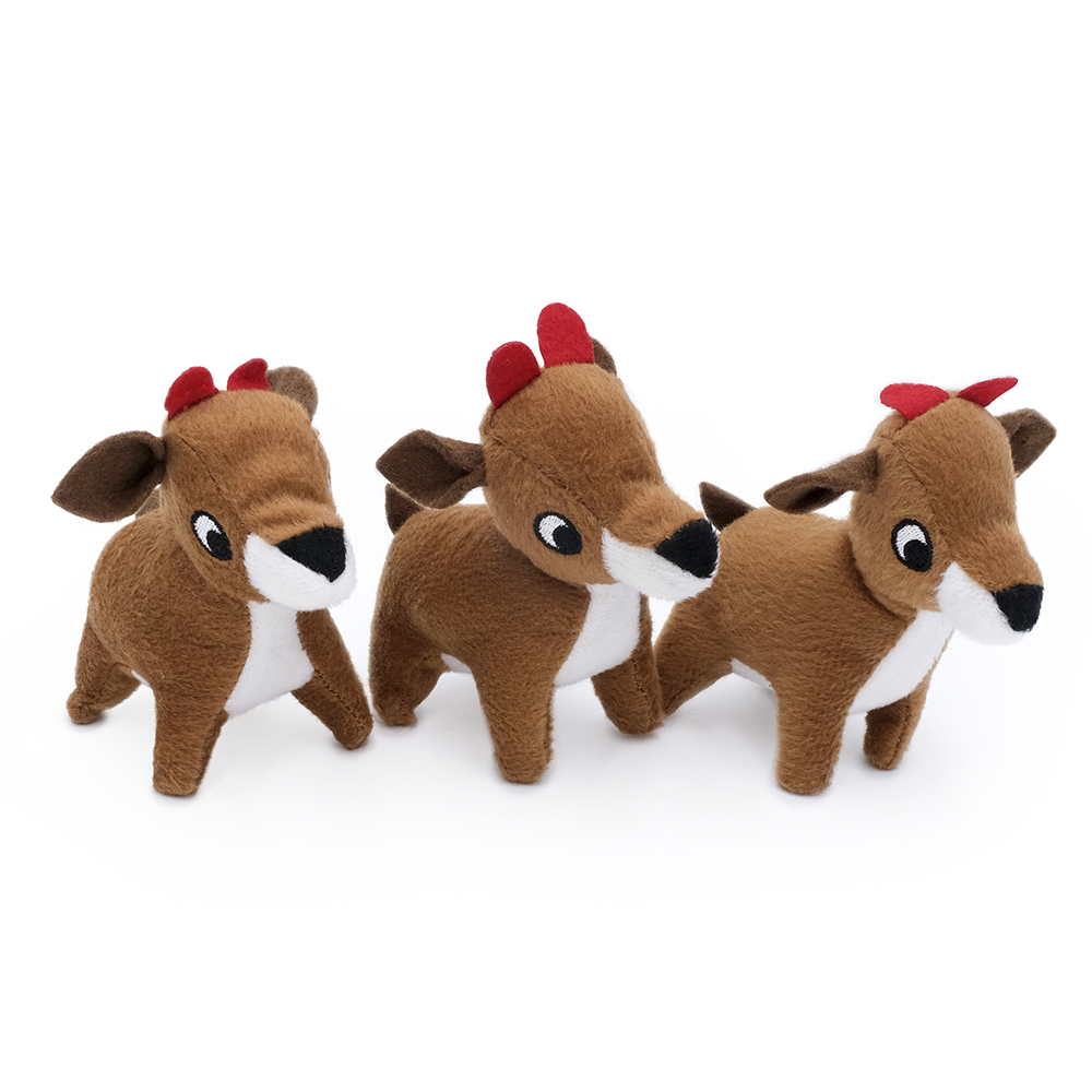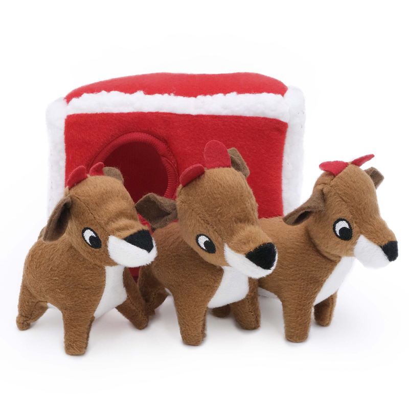 Спрятать, откопать, пищать! Игрушки ZippyPawsсерии Zippy Burrow представляют собой наборы из контейнера и трех небольших игрушек с пищалками. Развиваем чувства, моторику и интеллект питомца: каждый будет рад найти внутри плюшевого "домика" мягких пищащих оленят!