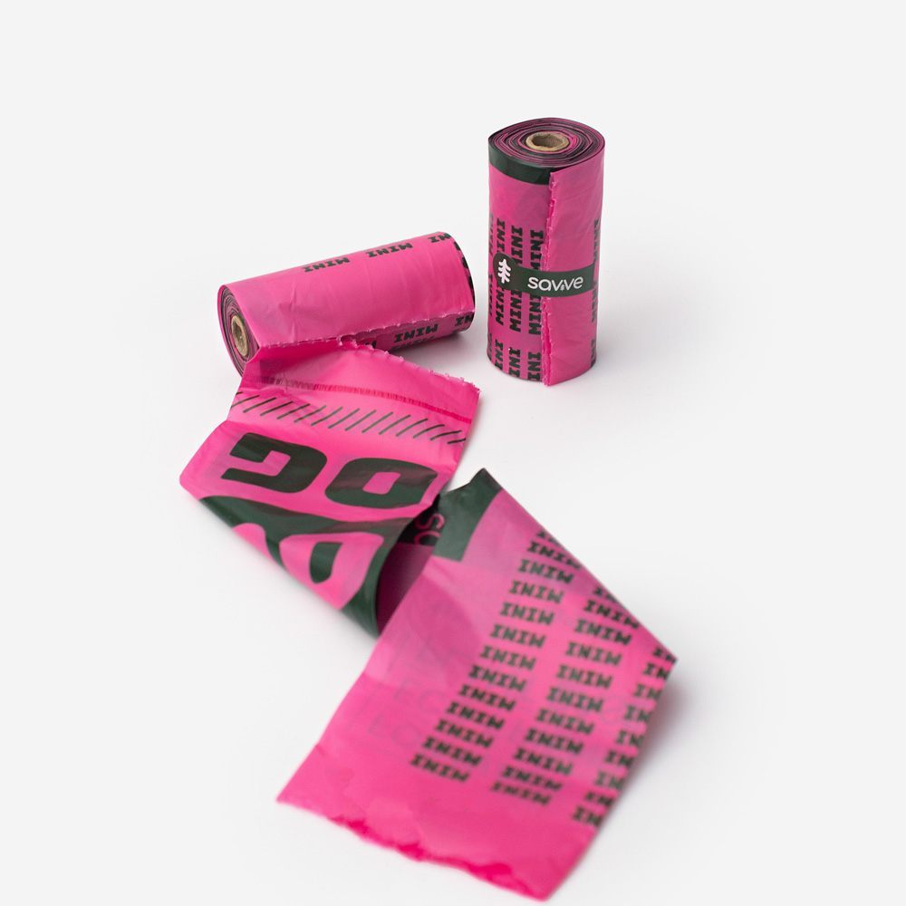 Пакеты на органической основе SAVVE для выгула питомцев с приятным запахом лаванды. Состоят из кукурузного крахмала и полностью разлагаются при компостировании.