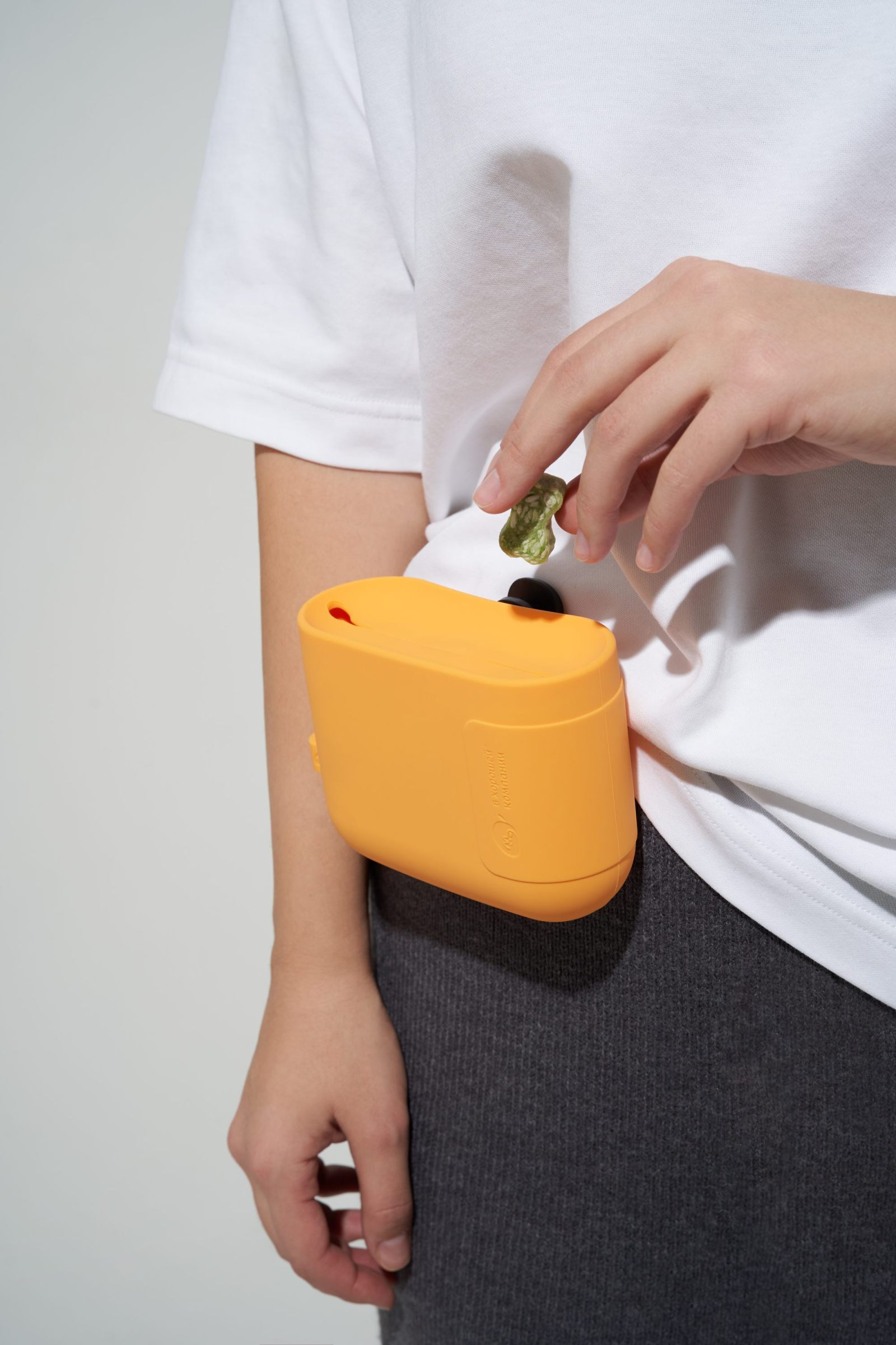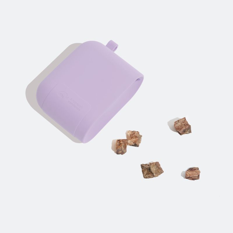 Сумочка сделана из пищевого силикона — гладкого материала, безопасного для хранения съедобностей. В ней удобно носить как сухие, так и влажные угощения — и легко очистить после. Сумочку можно даже мыть в посудомоечной машине (на верхней полке, выбрав режим для пластика). А еще сверху на ней есть особое антистатическое покрытие от загрязнений — так что она будет меньше пачкаться, даже при частом использовании.