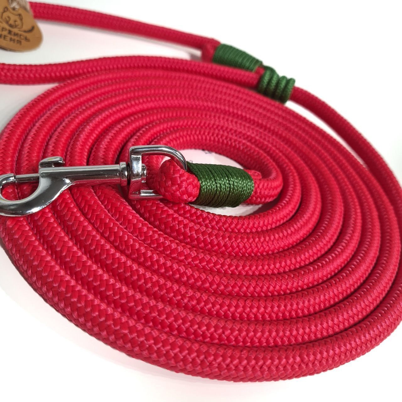 У поводка надежный карабин, а все швы надёжно прошиты в ручную, чтобы ваш хвостик точно держался вас!
