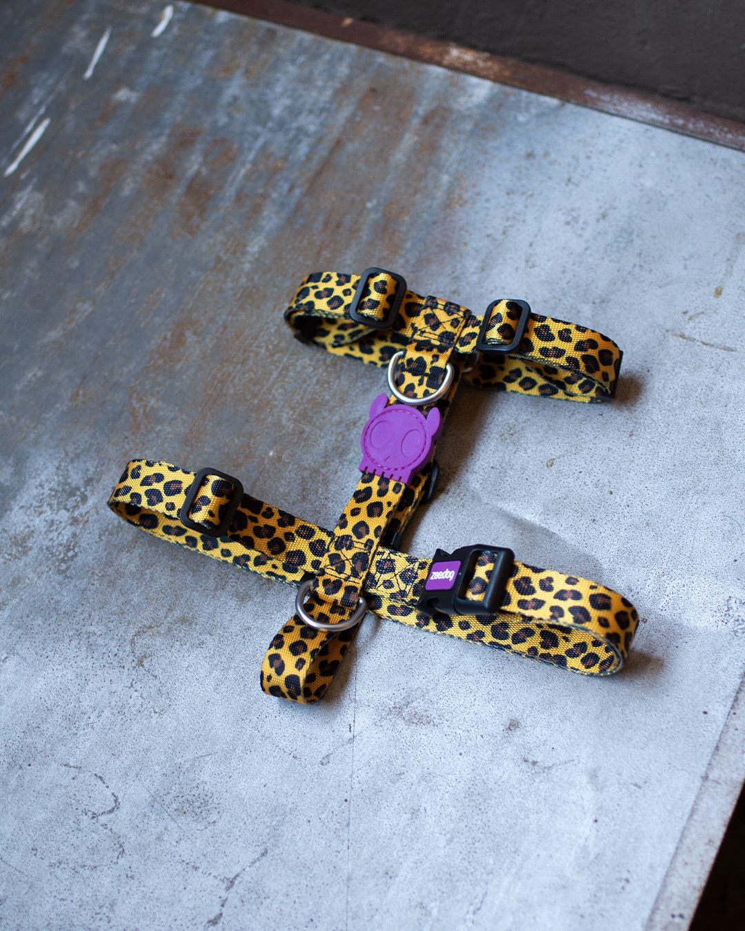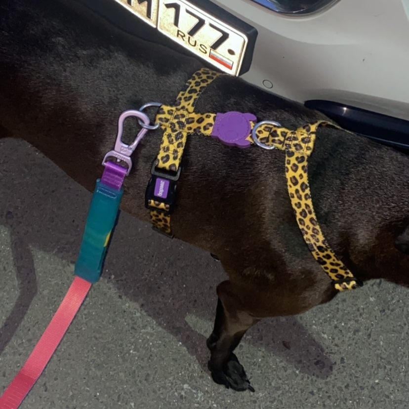 Zee.Dog любит удивлять! Яркий леопардовый принт с фиолетовым логотипом на шлейке. Готовы на такой эксперимент?