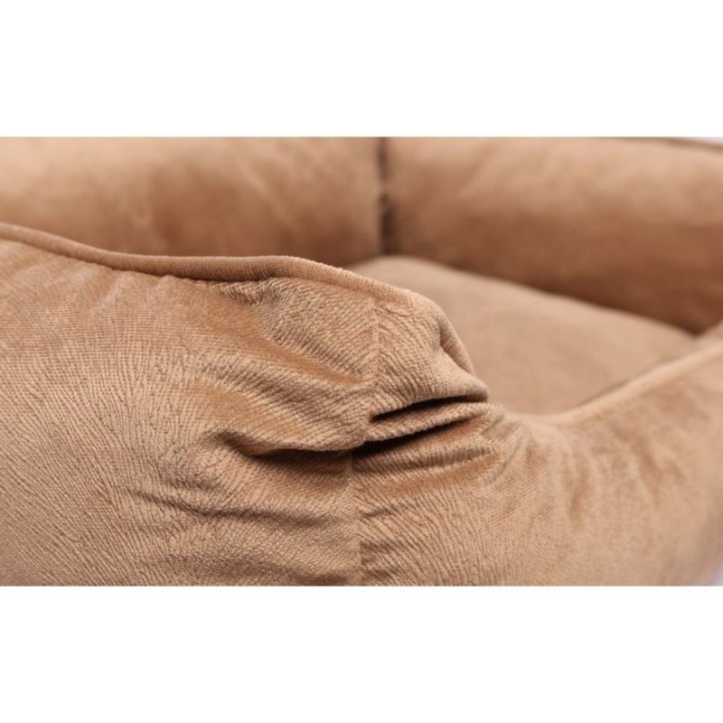 Мягкие бортики и подушечка с наполнителем из синтепона не оставят животное равнодушным к ней.