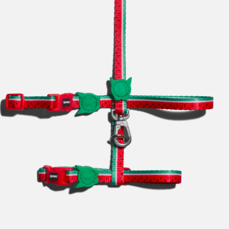 В набор вошли шлейка и легкий поводок. Шлейка имеет универсальный размер и подходит большинству котиков. Регулировки обхвата шеи и груди позволяют настроить амуницию точно по размеру. Кольцо крепления поводка – на спине. Облегченная конструкция шлейки подразумевает одну поперечную стропу по спине. Поводок Zee.Cat имеет длину 120 сантиметров, ширину стропы – 1 см и легкий аккуратный карабин. Малый вес поводка не раздражает питомца.