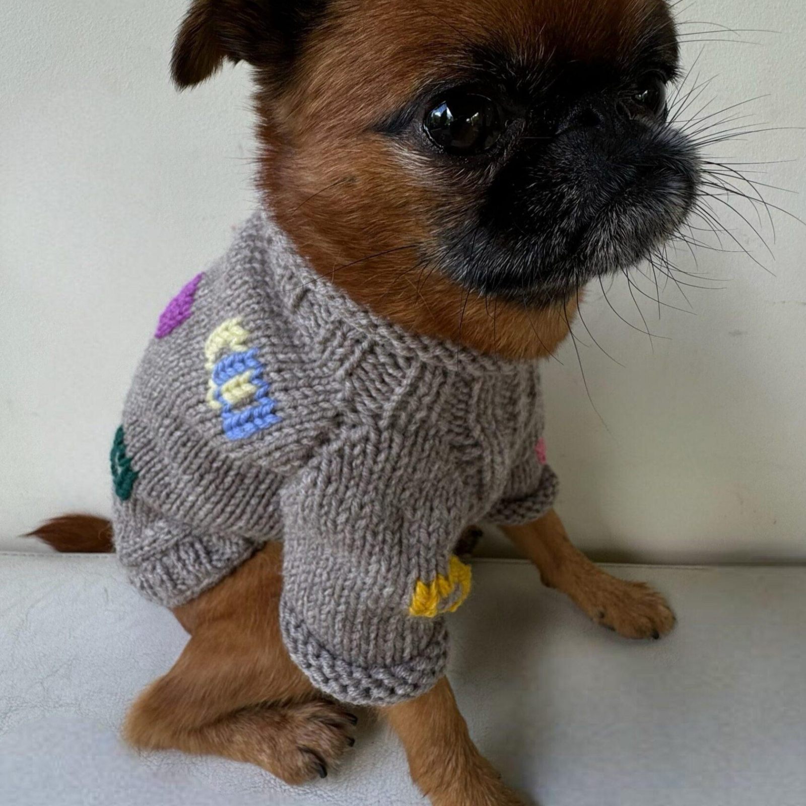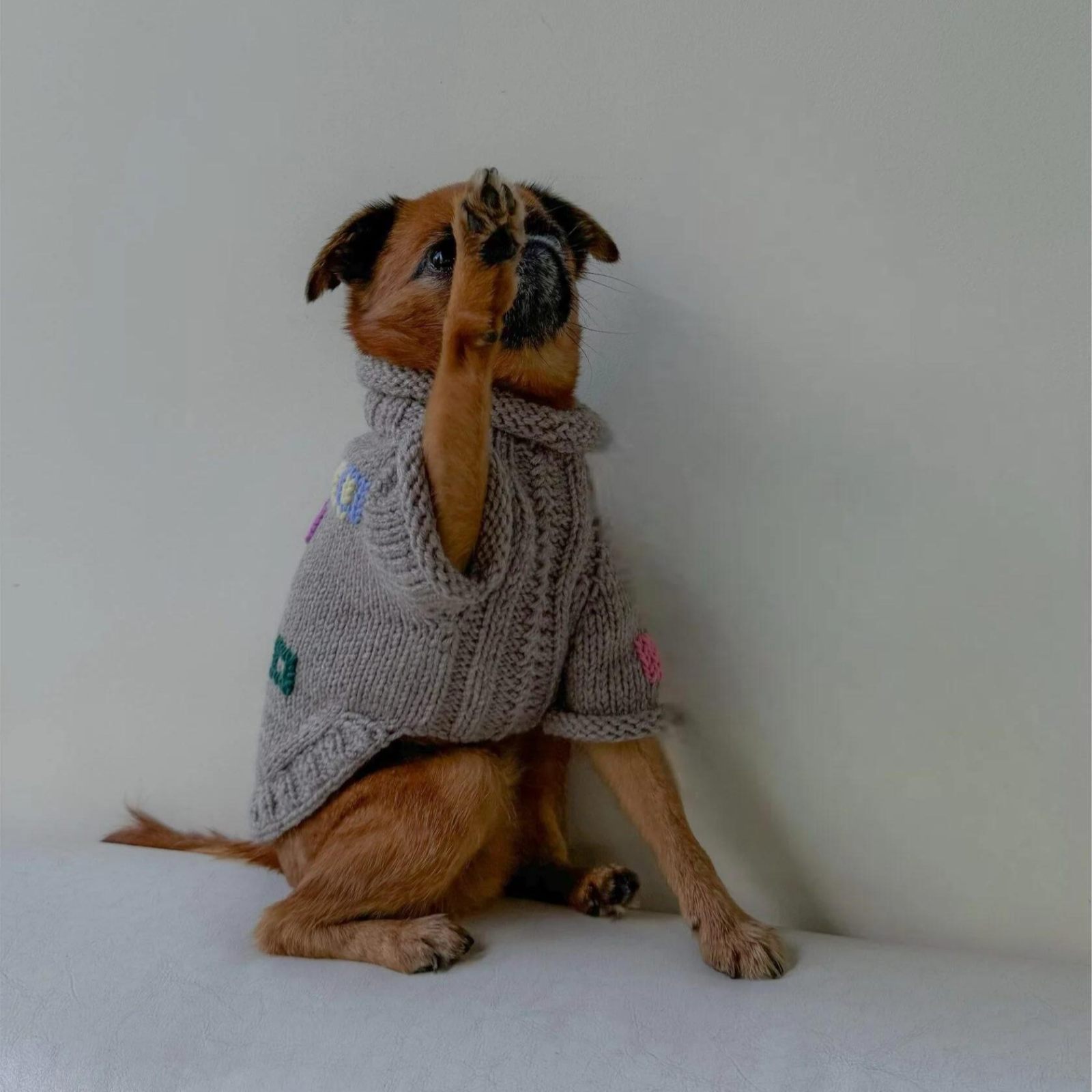 Свитер для собаки ручной вязки выполнен из фактурной и высококачественной мягкой полушерсти. Сочетание эстетки, с носкостью и простотой в уходе.