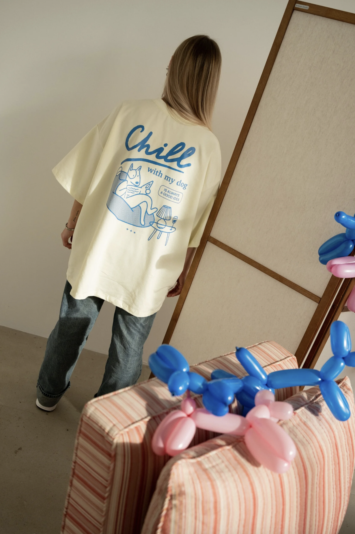 Принт на спине выполнен методом шелкография в цвете сливочное масло