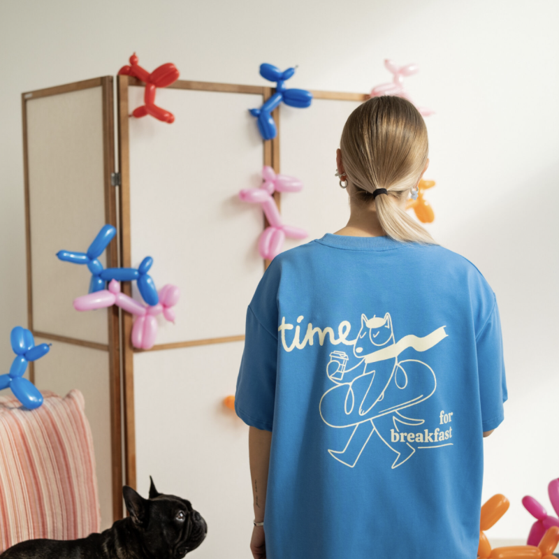 Принт на спине выполнен методом шелкография в цвете сливочное масло