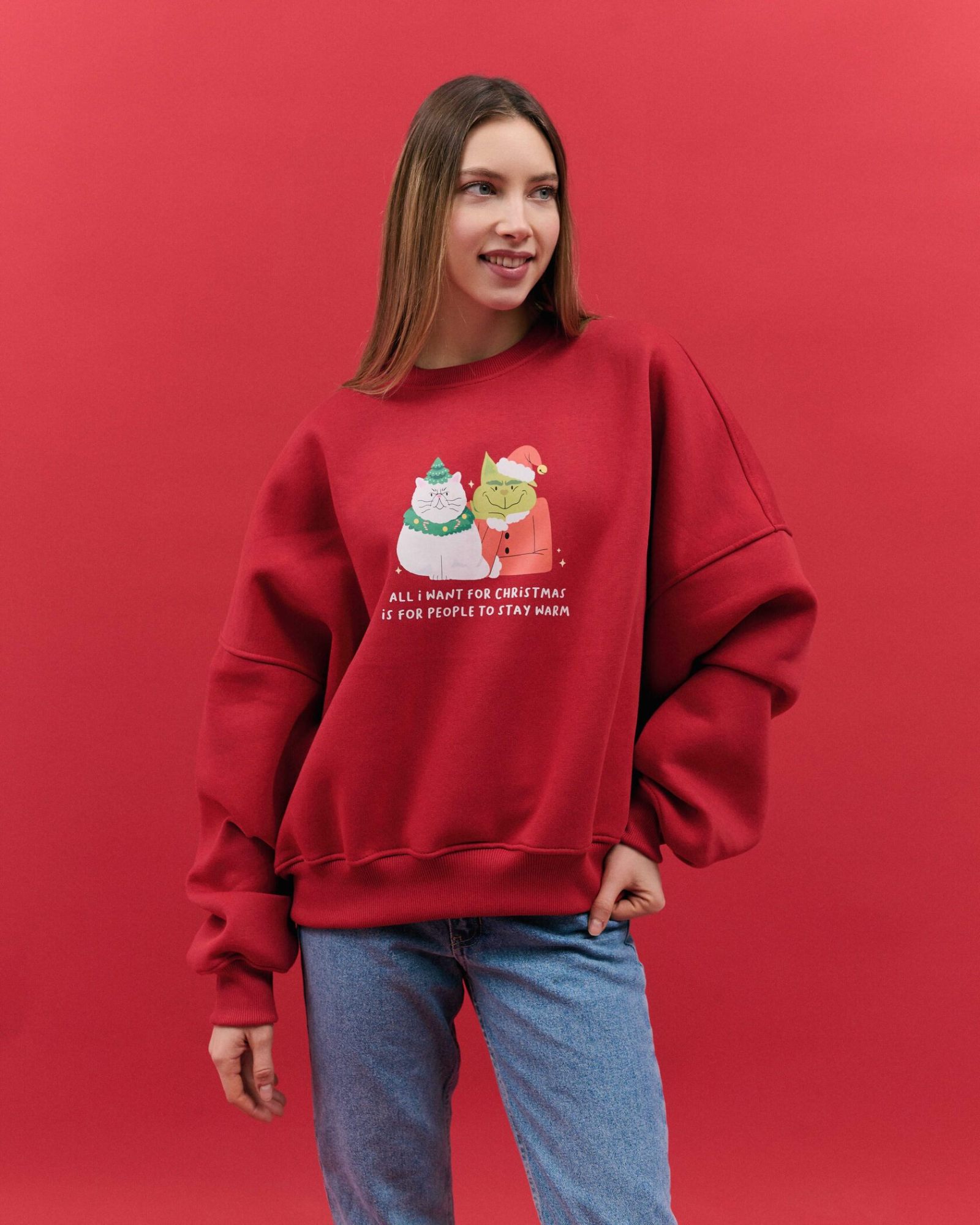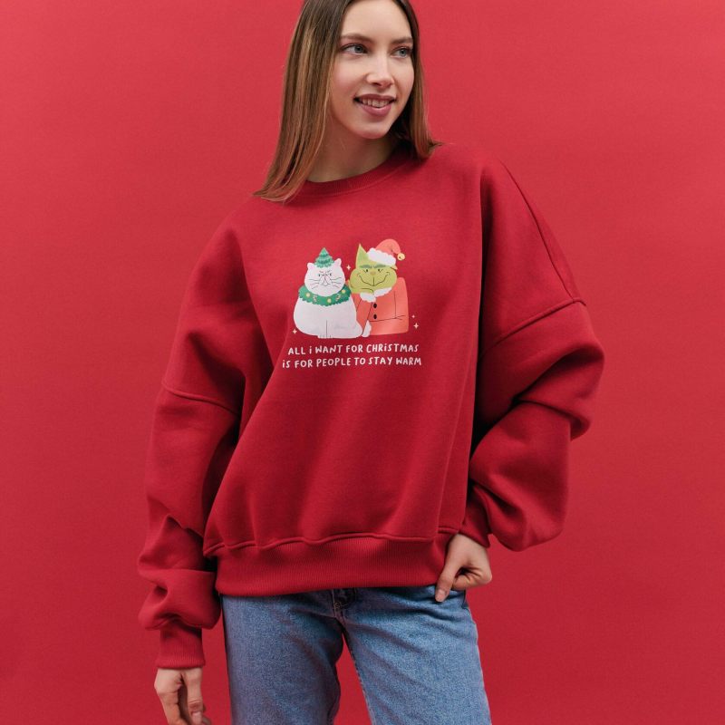 Модель oversize с круглым воротом и надписью на груди, выполненной методом термотрансфер.