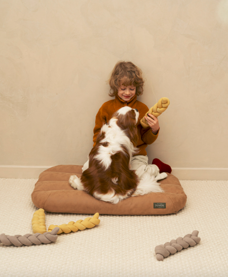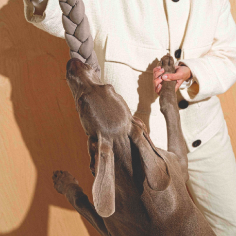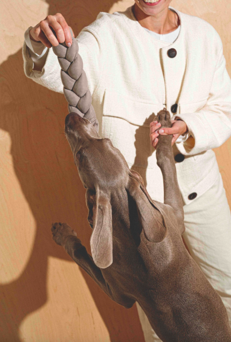 Мы сделали игрушку из антивандальной ткани, а форма у нее такая, что вам будет удобно ухватиться за нее руками, а вашему пёсику — зубами.