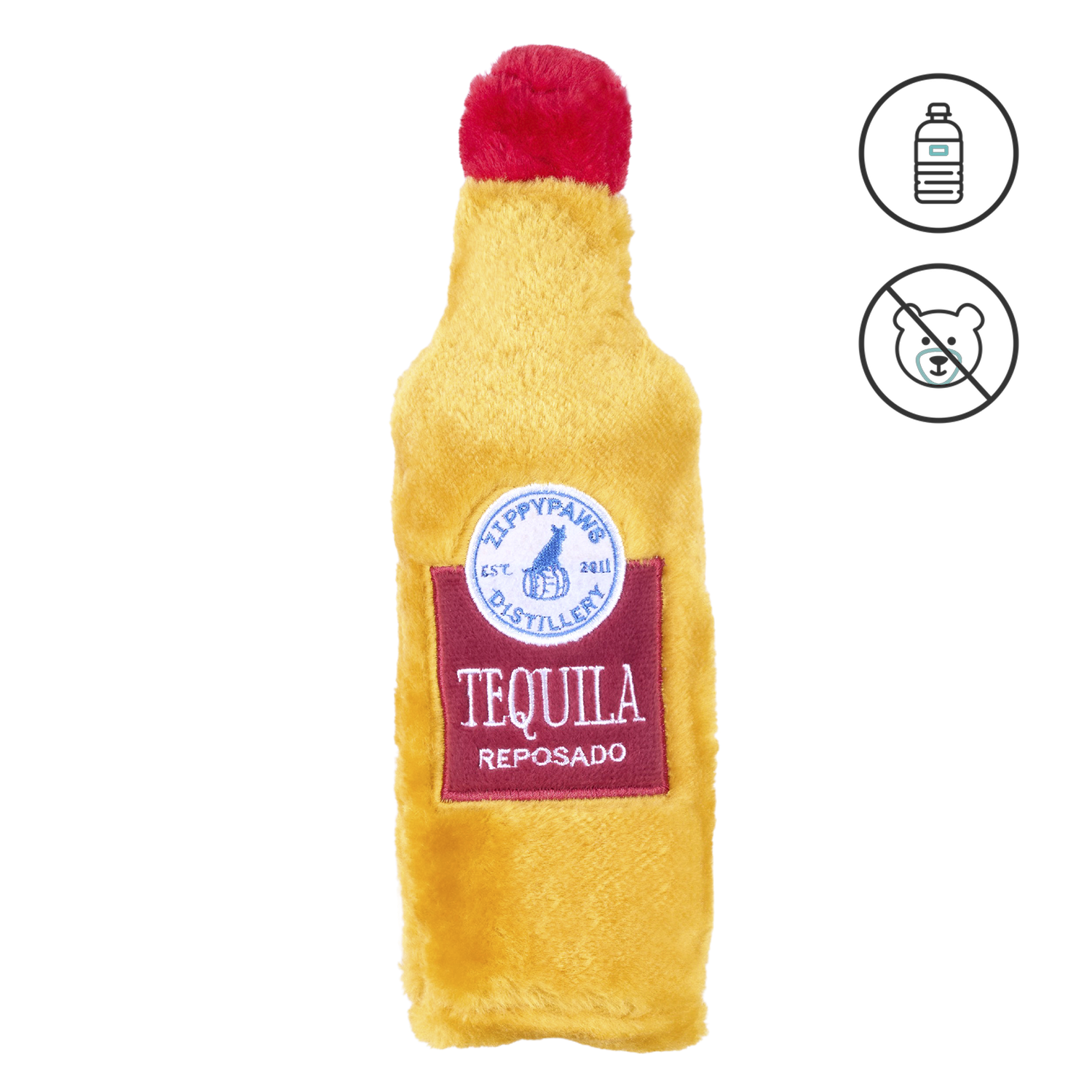- Мягкая и крепкая полая игрушка в виде бутылки текилы;